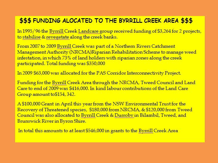 The Byrrill Creek area was populated by people of the Ngdonowal dialect of the Bundjalung and Yugambeh language chains. Converge Pty Ltd was engaged by NSW Department of Commerce in 2009 to conduct a PAO of the area associated with the Byrrill Creek Dam, including a 3-day field survey with Aboriginal participants (George Scott, Garth Lena, Jackie McDonald and Harry Boyd).