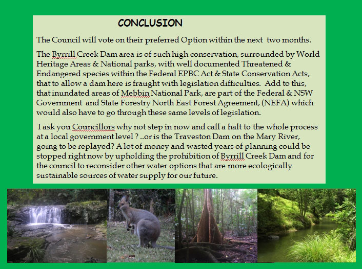 • Observance of the legislative procedures under the National Parks and Wildlife Act 1974, and in particular, Section 90. In summary, it is considered that the issues associated with Aboriginal cultural heritage are significant for both of the dams proposals. The members of the Aboriginal community that attended a meeting in March 2010, convened by Council to discuss the water supply augmentation options, were hesitant to support any proposal that would be interpreted as an approval to destroy Aboriginal cultural heritage sites and places. However, the members of the Aboriginal community were prepared to work with Council to determine a preferred option.